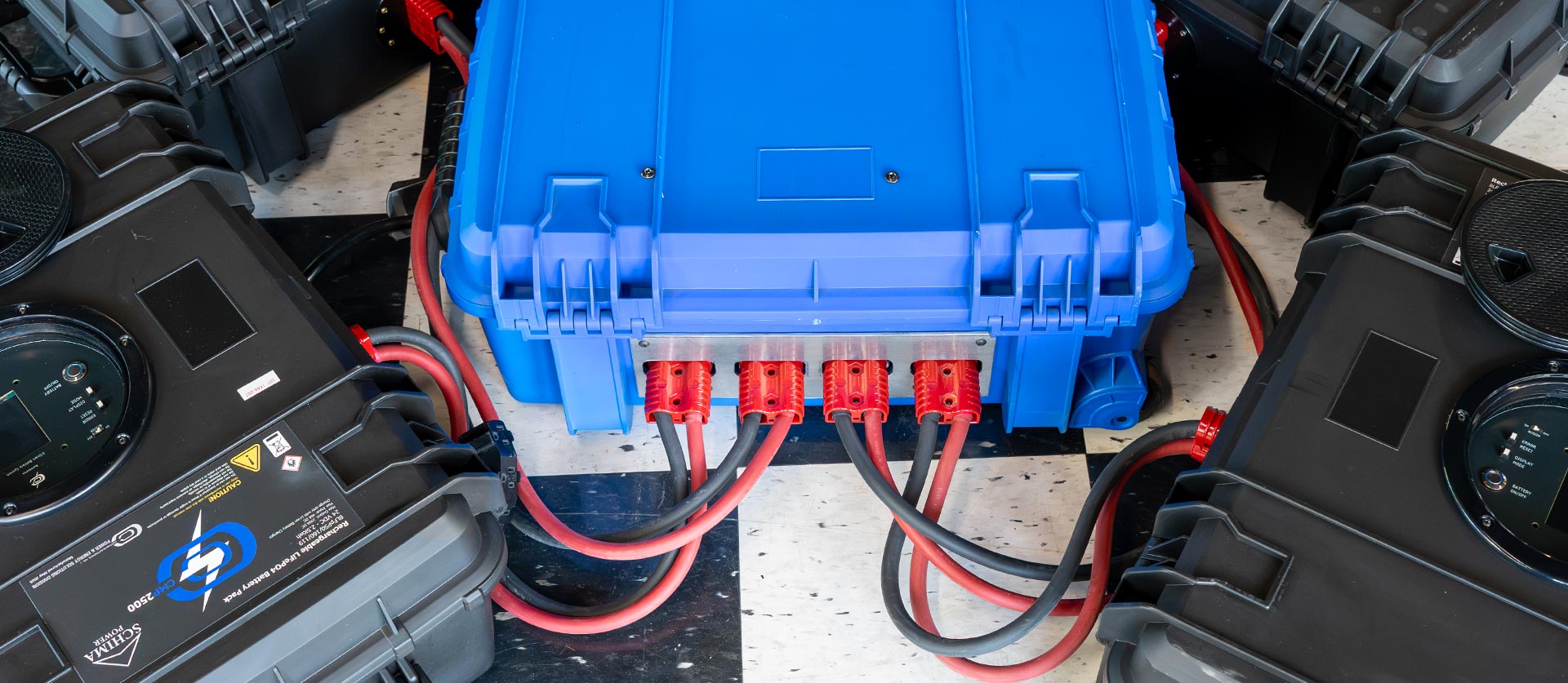 Schima's CMP2500 is greener than a standard generator, no fumes and is virtually silent in running, meaning it can run in close proximity to whatever sources you are powering. This also means that the need to drag long power cables from the generator to your equipment is reduced drastically. The batteries have the ability to be daisy chained together to provide even more power if needed. Schima batteries can be rented as a perfect complement to your gear.